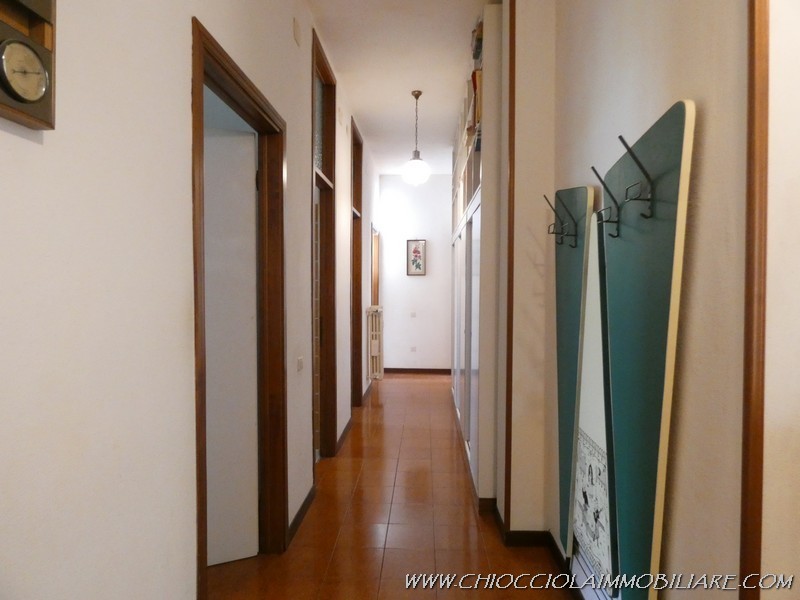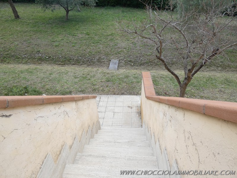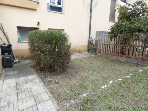 La porta d'ingresso si apre su un corridoio disimpegno su cui si affaccia una cucina di giuste dimensioni con accesso al balcone con affaccio sul grande giardino condominiale raggiungibile direttamente da una scala che da accesso al piccolo giardino in uso all'appartamento, che resta comunque condominiale.