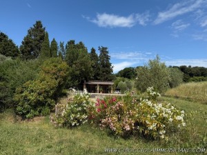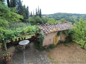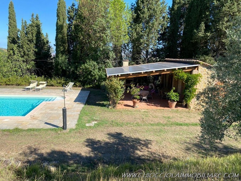 Attraversando la strada di accesso al podere, una tranquilla strada asfaltata vicinale pochissimo transitata se non dai proprietari dei terreni vicini si giunge ad un annesso di mq 34 con bagno e porticato di mq 36 con impianto fotovoltaico senza batterie di kw 5 posto su un ampio giardino pianeggiante con piscina 12x6 realizzati nel 2008